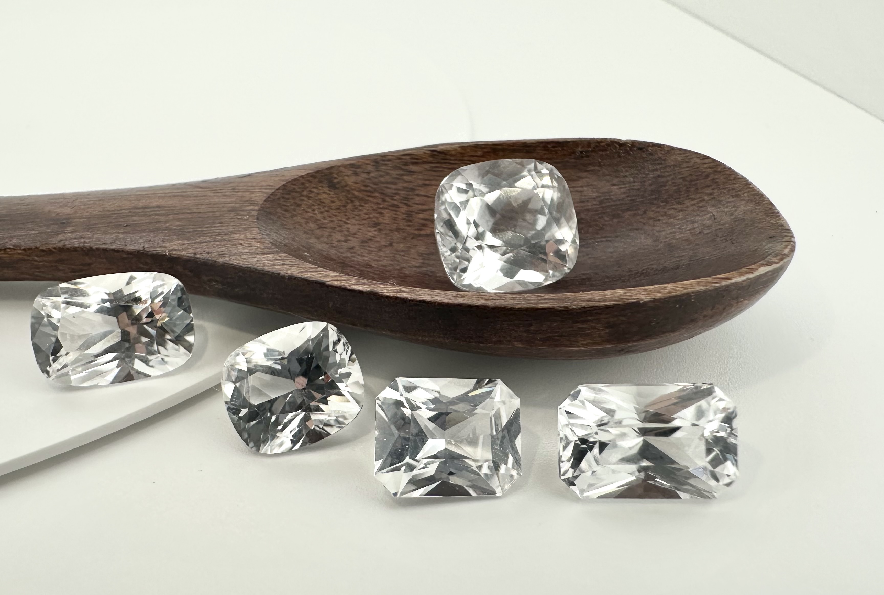 Третій камінь, що перегукується з коліром року, білий топаз. На відміну від місячного каменю, він не має оптичних ефектів, але вражає ідеальною прозорістю та ніжністю. У ньому немає навіть легкого відтінку — лише чисте, спокійне світло.