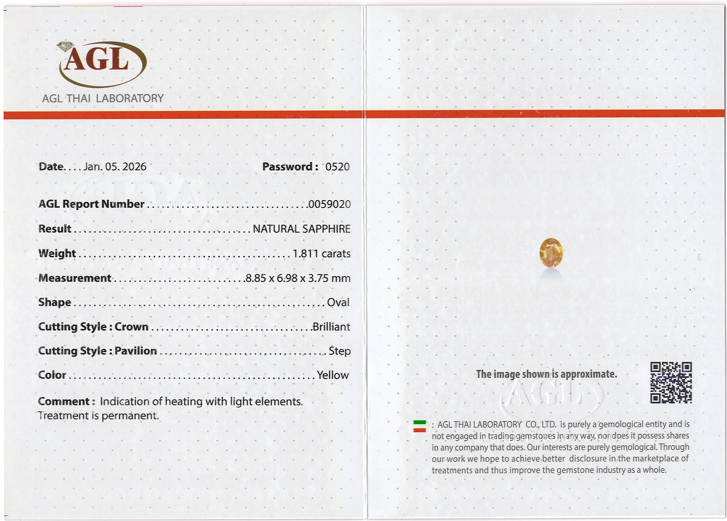 Сапфір / Жовтий / Овал / 1.8100 / 260034