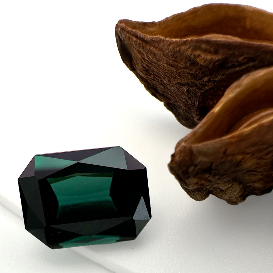 Натуральний верделіт із насиченим синюватим переливом. Для тих, хто хоче надати ювелірній прикрасі характеру та неповторності. У формі ограновування октагон.