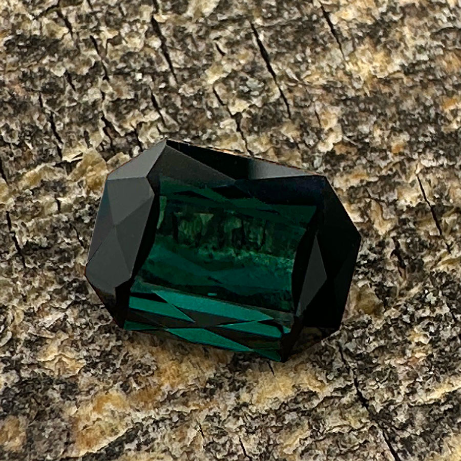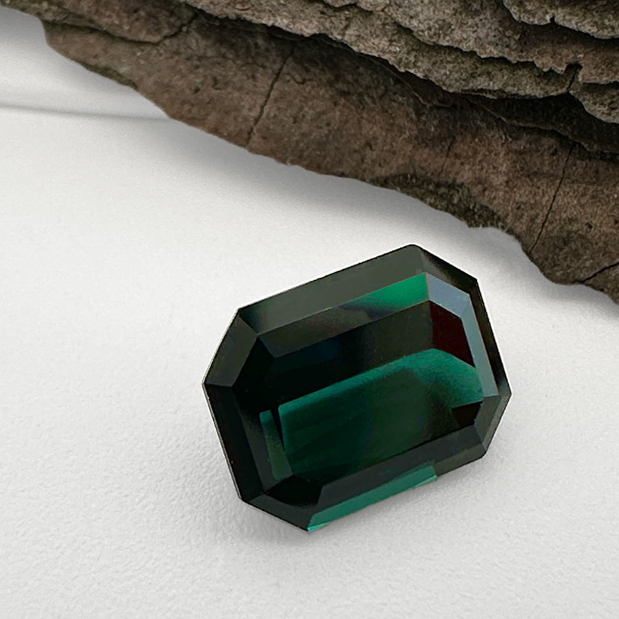 Чистий зелений турмалін верделить із синюватим відтінком в ограновуванні октагон.