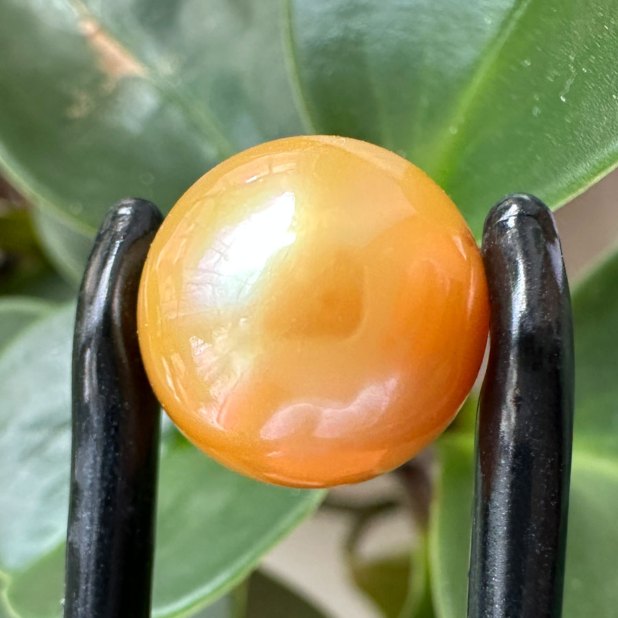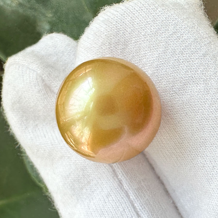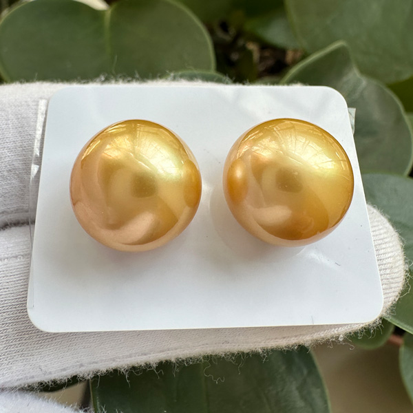Рідкісна пара золотих перлин Південних морів діаметром 14,5 мм — це поєднання ідеальної круглої форми та найбажанішого відтінку в світі перлів. Кожна перлина (вагою 4,4 г та 4,38 г) вирощувалася понад 3 роки, що робить такий розмір та насиченість кольору винятковим дефіцитом. Чудово підійдуть для створення статусних сережок, що підкреслені офіційним сертифікатом автентичності. Парна перлина з №260126.