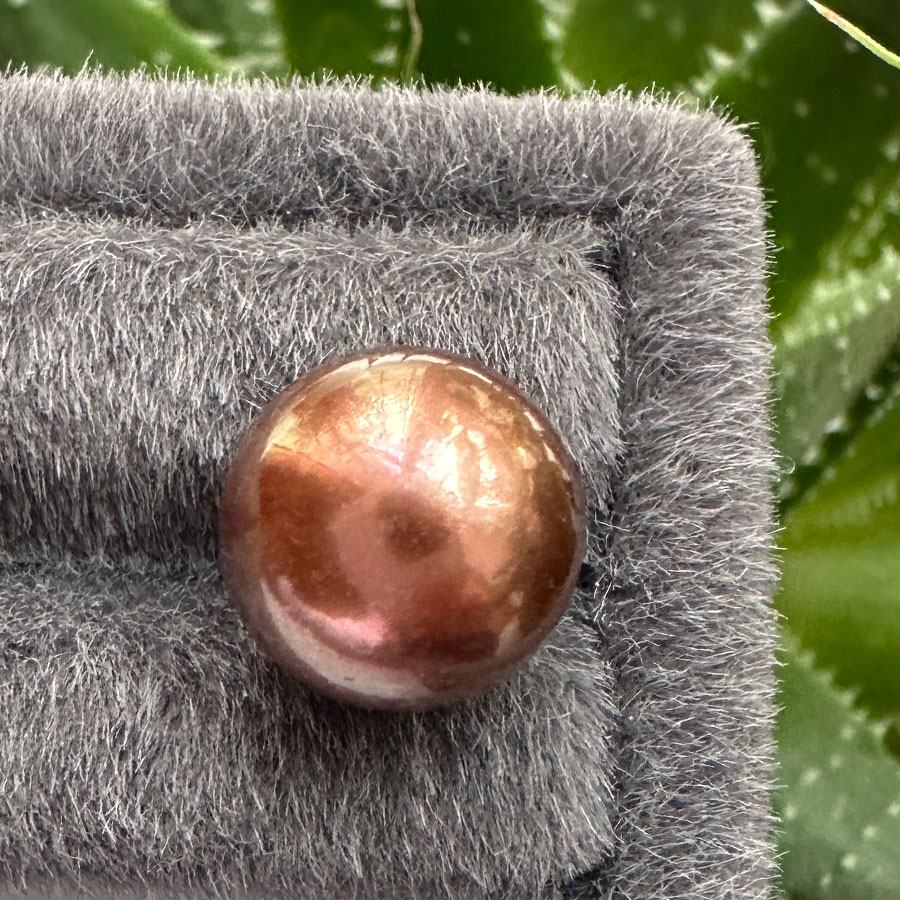 Перлина насиченого коричневого кольору з уже підготовленим напівсвердленим отвором, що робить її готовою для створення вишуканої каблучки або підвісу.