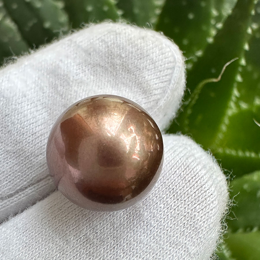 Шоколадна перлина з атласним блиском (11,94–12,06 мм, 2,5 г). Великий екземпляр морської перлини Південних морів з виразним характером. Вага 2,5 г та зразкова сферичність ( діапазон розміру лише 11,94–12,06 мм), роблять її ідеальною для центральної вставки в авторські ювелірні прикраси. Невеличкі природні відхилення на поверхні лише гарантують автентичність і підкреслюють стиль вабі-сабі. На кожну одиницю надається атестаційне свідоцтво, яке офіційно засвідчує натуральне культивоване походження та підтверджує фізичні параметри.